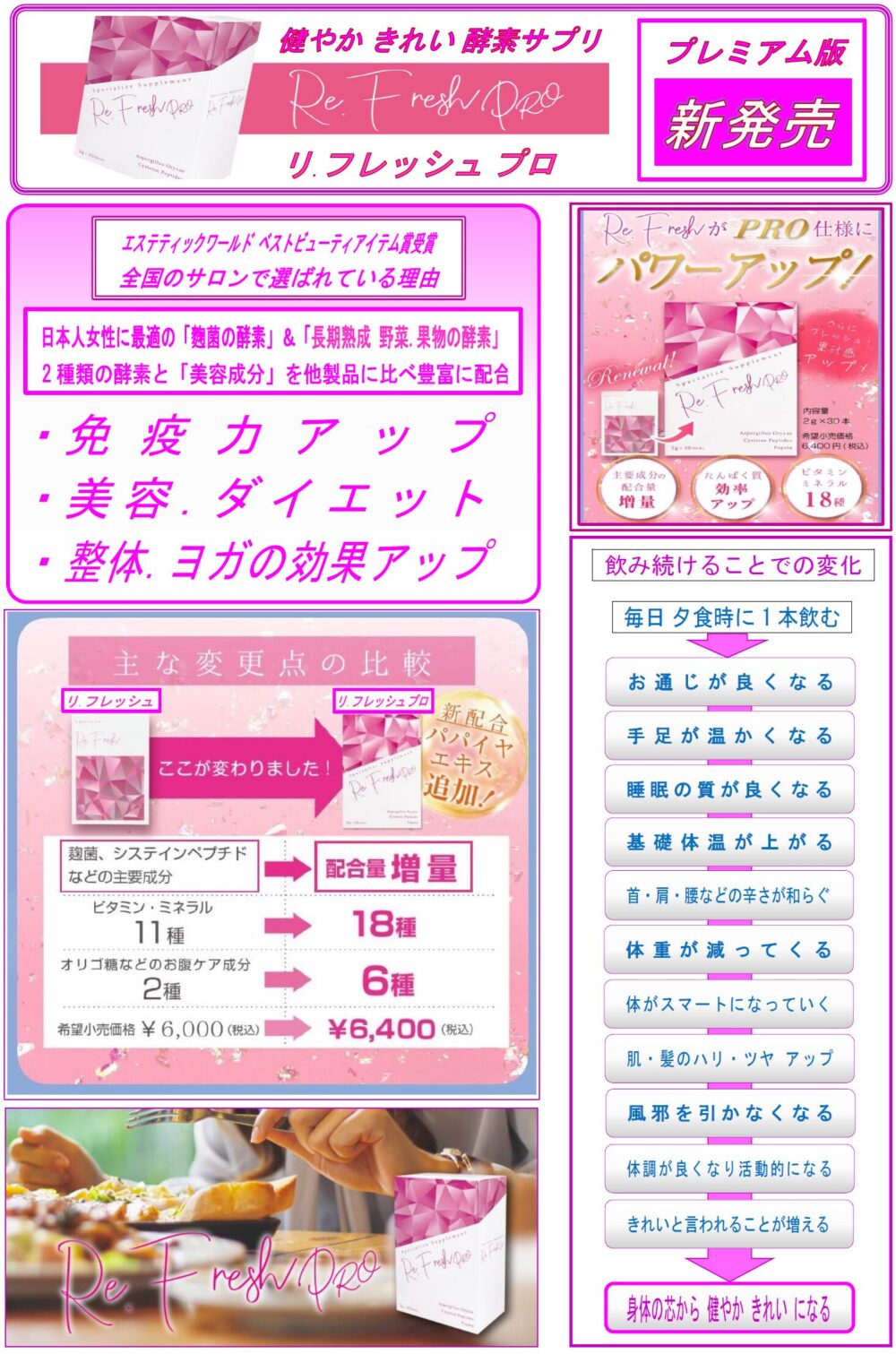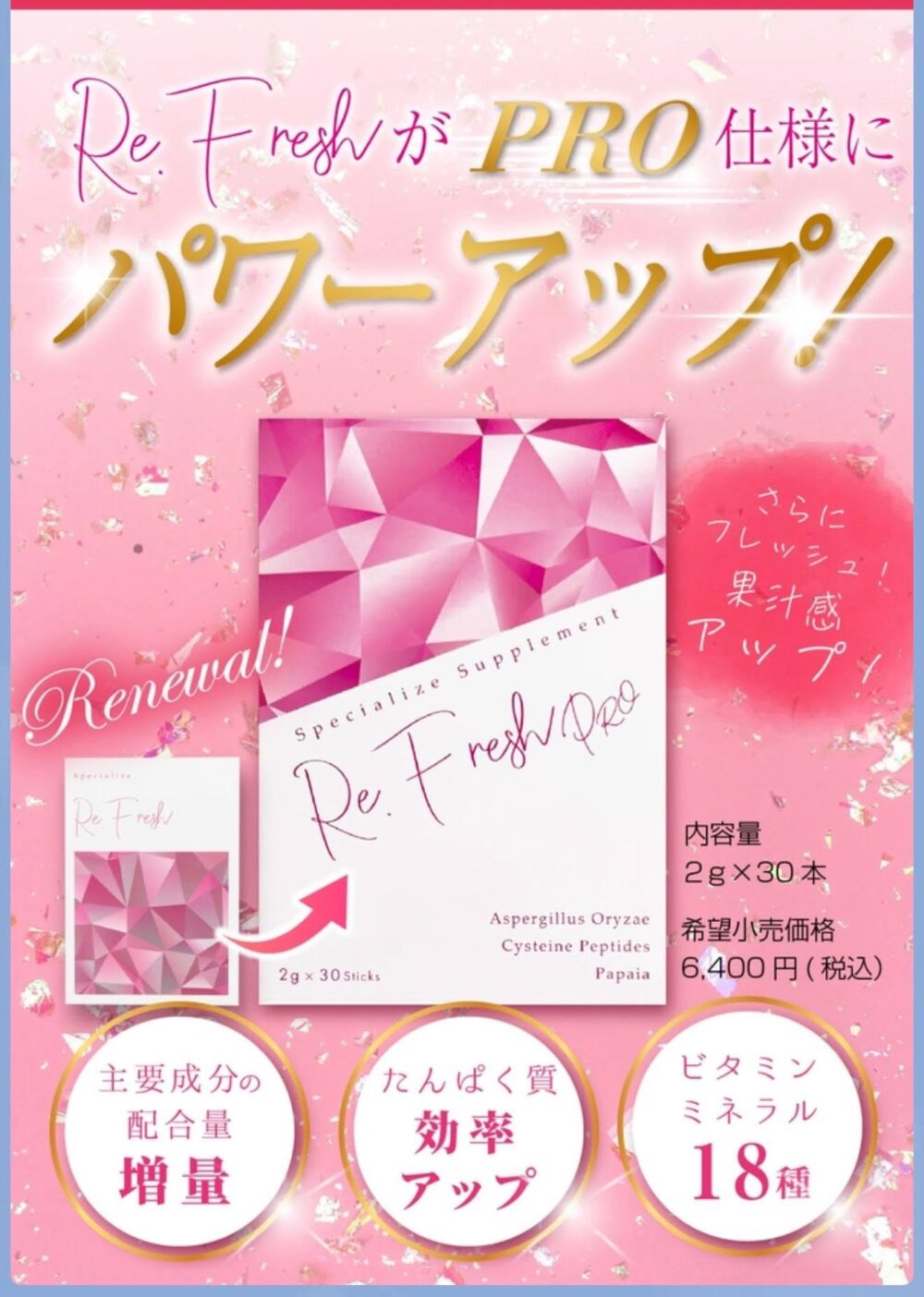 当店13年連続ベストセラーの酵素サプリメントRe.Fresh (リ.フレッシュ)のプレミアム版「Re.Fresh Pro (リ.フレッシュプロ)」をお試しして頂くため、
