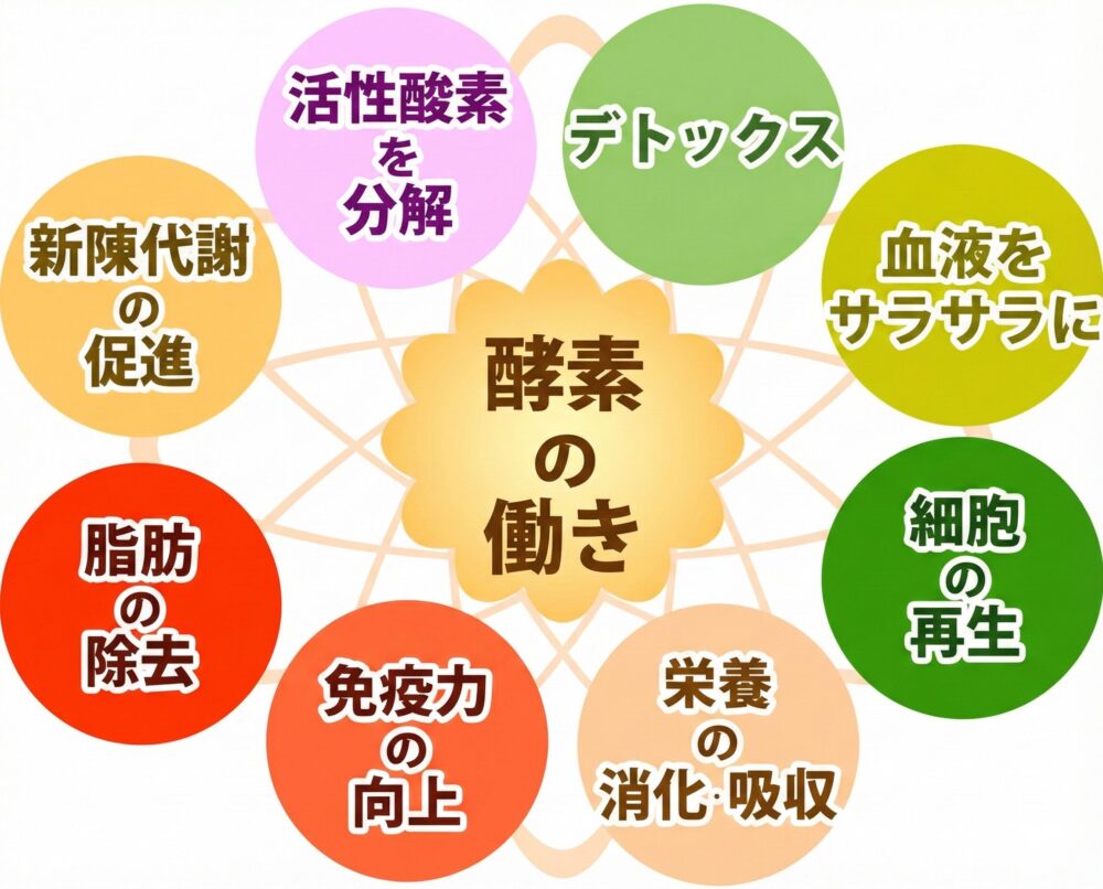 などの人は、体内酵素が「解毒・消化」に多く使われてしまい、免疫・治癒・代謝に回らなくなります。