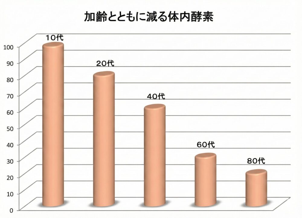 その酵素は、体内で生成され(体内酵素)、年齢とともに減少します。